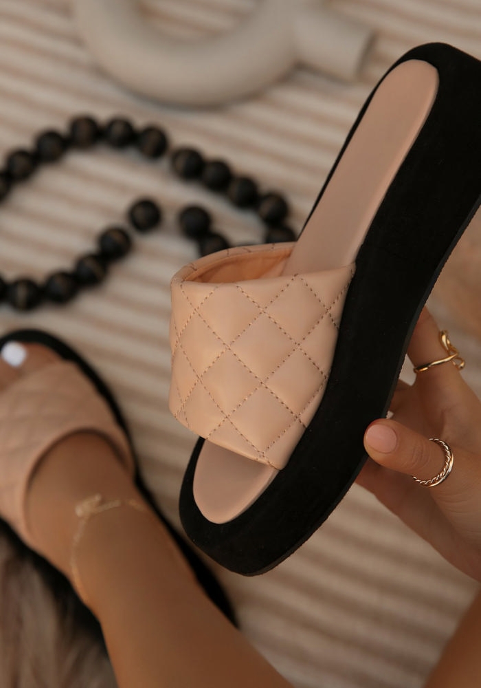 (Only Slipper,Apricot)2024 Styles Women Thick-soled Slip-on Checkered SlidesSKU: #OU2946-1