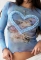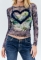 (Only Tops,Dark Blue)2024 Styles Women Mesh Print Heart 3D Decor Round Neck Long Sleeve TopSKU: #CF76174-2