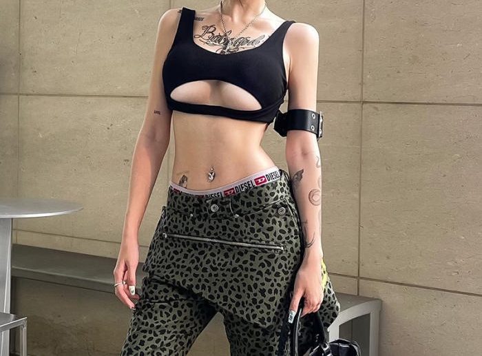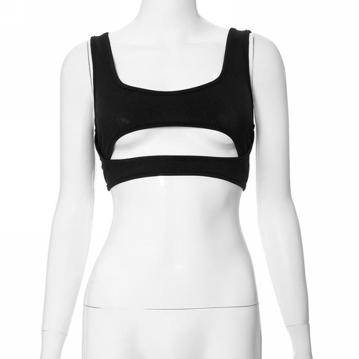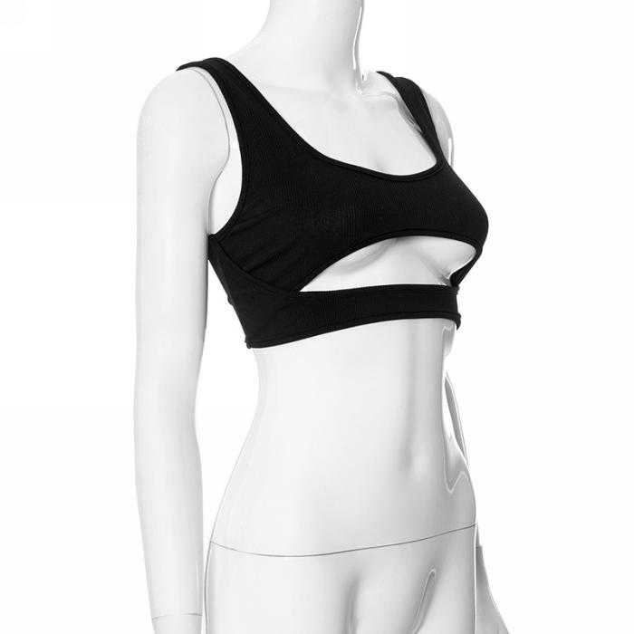 (Only Tops,Real Image)2024 Styles Women Fashion Solid Color Open-Work Halter Cropped TopSKU: #CF76143-1