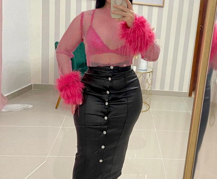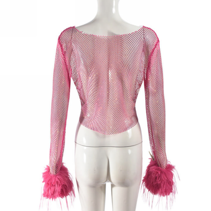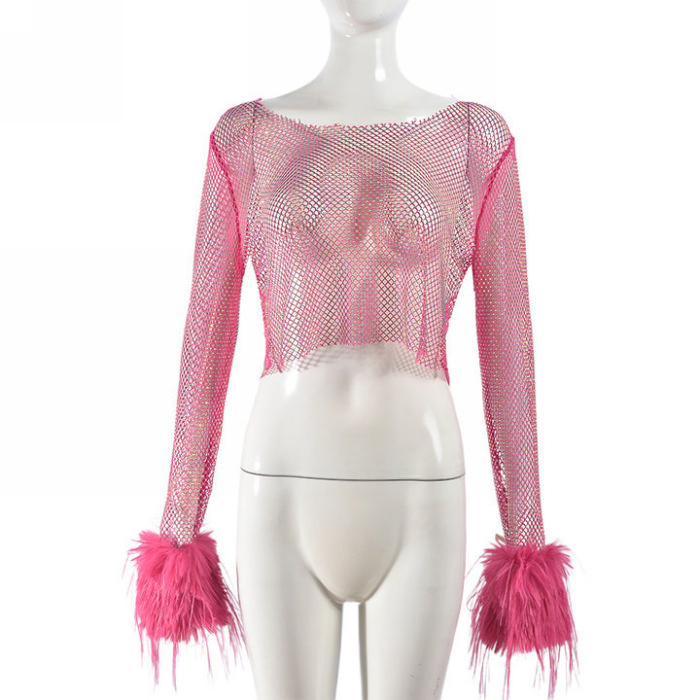(Only Tops,Real Image)2024 Styles Women Spring/Summer Fishnet Sequined Sexy T-Shirt TopSKU: #CF59858-2