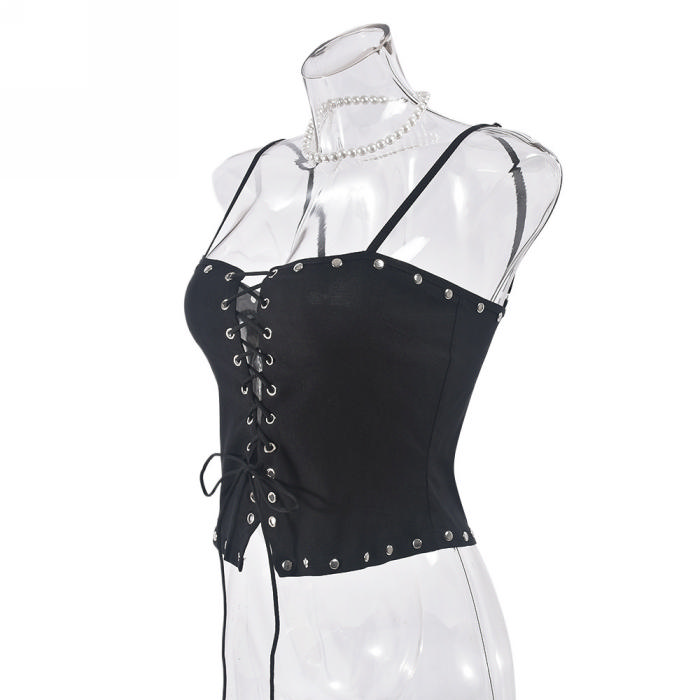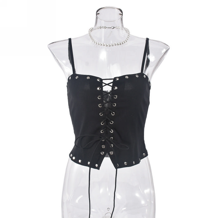 (Only Tops,Real Image)2024 Styles Women Summery Lace-Up Sleeveless Hollow Out Backless Cami TopSKU: #CF59895-1