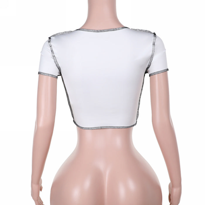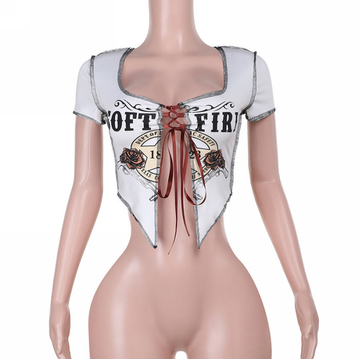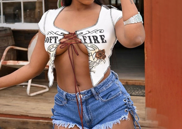 (Only Tops,Real Image)2024 Styles Women Trendy Street Sexy Color-Blocked Print Tie-Up TopSKU: #XF92822-1