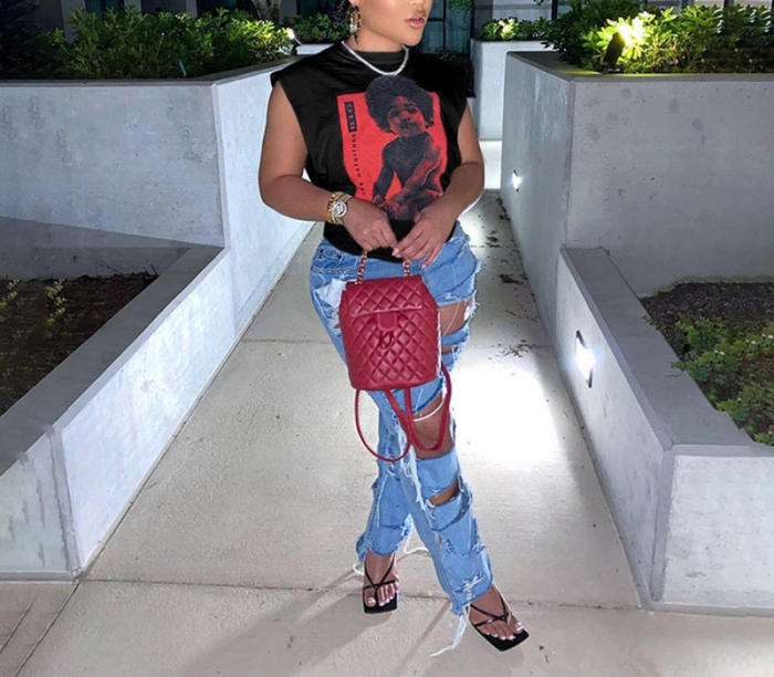 (Only Tops)2022 Styles Women Fashion INS Styles Print Sleeveless TeeSKU: #CF49712-1