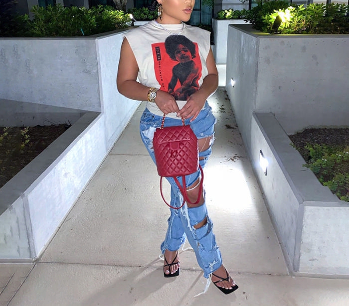 (Only Tops)2022 Styles Women Fashion INS Styles Print Sleeveless TeeSKU: #CF49712-2