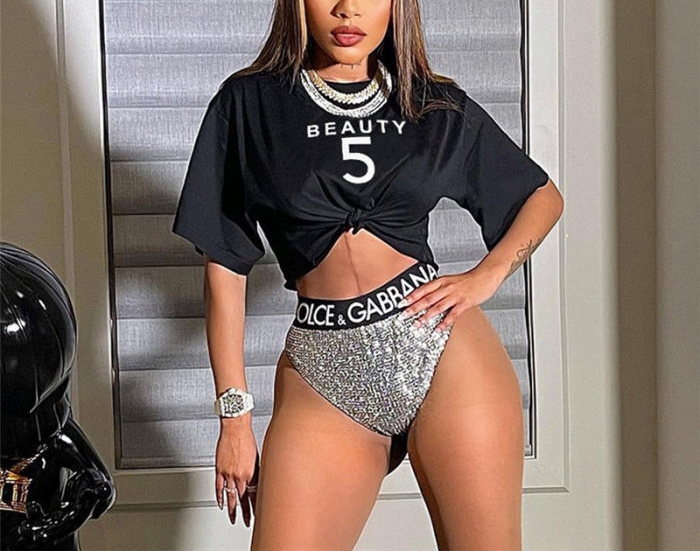 (Only Tops)2022 Styles Women Fashion Summer INS Styles Print TeeSKU: #CF48587-2