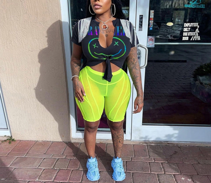 (Only Tops)2022 Styles Women Fashion Summer INS Styles Print V Neck TeeSKU: #CF49637-2