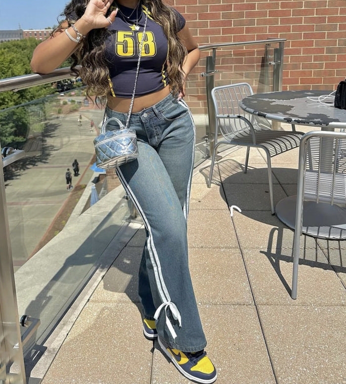 (Only Tops)2024 Styles Women Letter Print Round Neck Fitted Crop Top with Stretchy MaterialSKU: #OEM6030-3