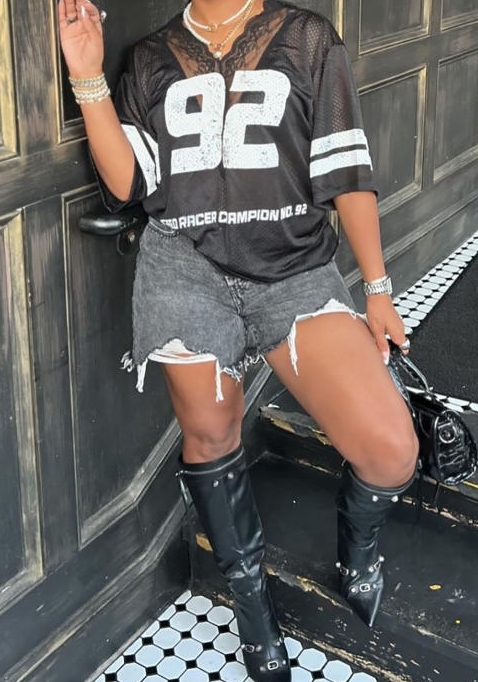 (Only Tops)2024 Styles Women Stylish Relaxed Casual Lace-Trimmed V-Neck Short Sleeve T-ShirtSKU: #OEM6032-1
