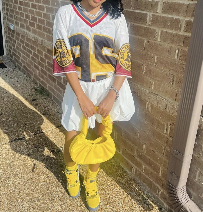 (Only Tops)2024 Styles Women Stylish V-Neck Loose Fit Number Print Sports Jersey T-ShirtSKU: #OEM6034-5