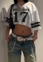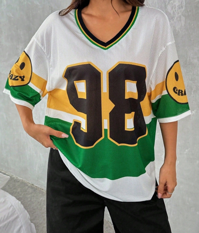 (Only Tops)2024 Styles Women Stylish V-Neck Loose Fit Number Print Sports Jersey T-ShirtSKU: #OEM6034-7