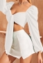 (Only Tops)2025 Styles Women Elegant Bishop Sleeve Blouse with Belted Waist DesignSKU: #OU3028-3