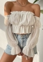(Only Tops)2025 Styles Women Off-Shoulder Ruffle Detail Sheer Chiffon BlouseSKU: #OU3029-1