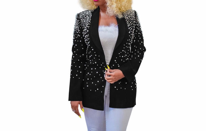 (Only Tops)(Black)2023 Styles Women Sexy&Fashion Autumn/Winter TikTok&Instagram Styles Sequins Open CoatSKU: #XF73045-2