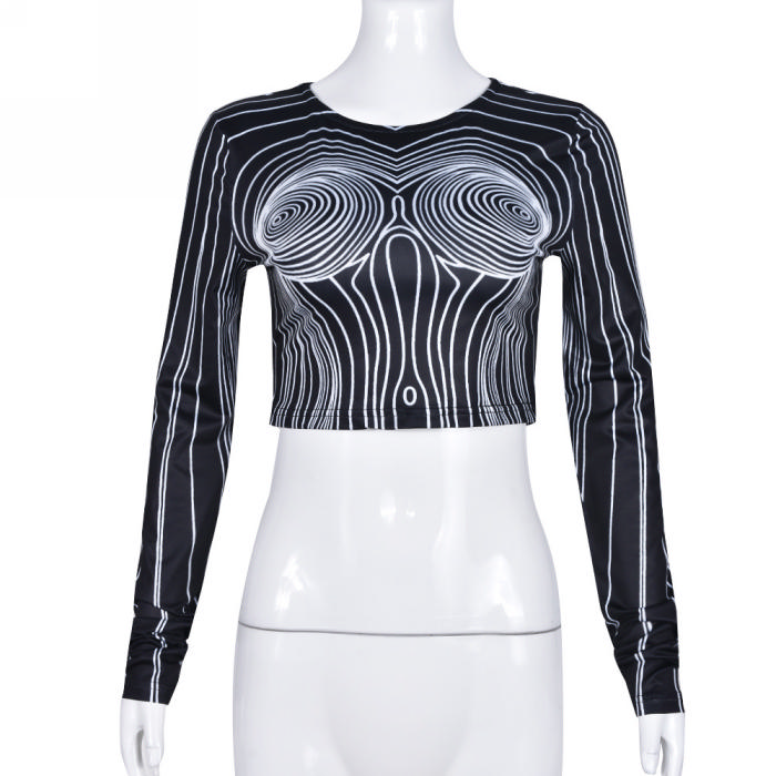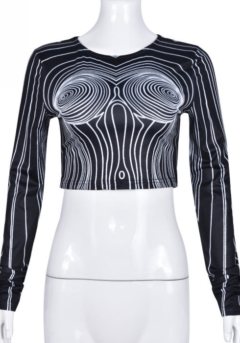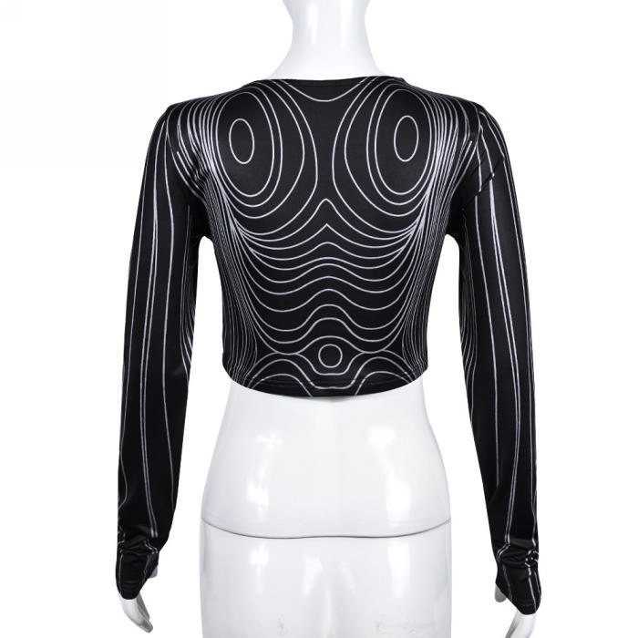 (Only Tops)(Black)2023 Styles Women Sexy&Fashion Spring&Summer TikTok&Instagram Styles Print Long Sleeve TeeSKU: #CF59481-3