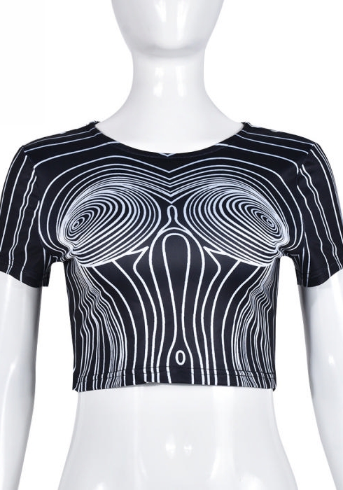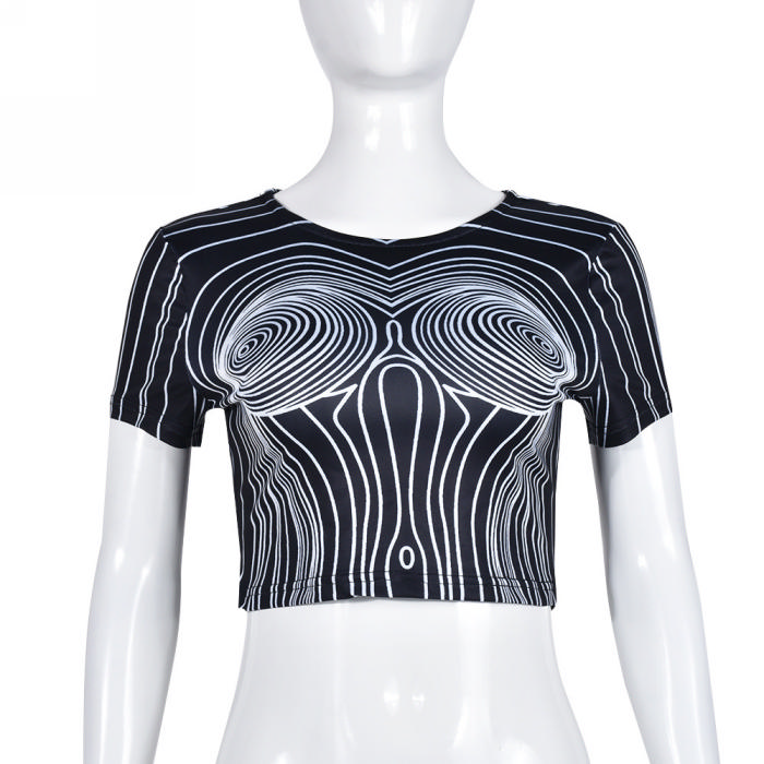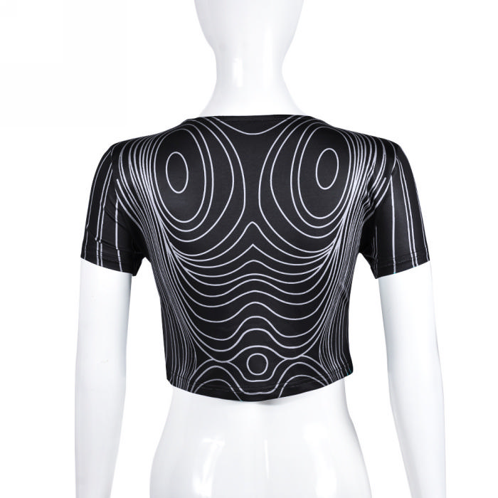 (Only Tops)(Black)2023 Styles Women Sexy&Fashion Spring&Summer TikTok&Instagram Styles Print Short Sleeve TeeSKU: #CF59481-6