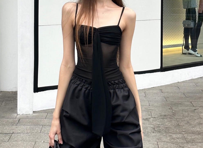 (Only Tops,Black)2024 Styles Women Sexy Open-Work Tie-Back Bow Sleeveless Halter Solid Color TopSKU: #CF761802-2