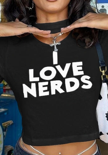 (Only Tops,Black)2024 Styles Women Summer Fashion Letter Print Round Neck Hollow Short Sleeve Crop Top T-shirtSKU: #CF47873-2