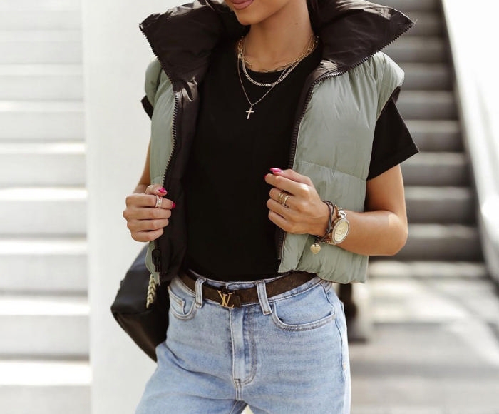 (Only Tops)(Green&Black)2023 Styles Women Sexy&Fashion Autumn/Winter TikTok&Instagram Styles Sleeveless CoatSKU: #CF59803-2