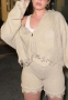 (Only Tops)(Khaki)2022 Styles Women Fashion Summer TikTok&Instagram Styles Front Zipper Sweater CoatSKU: #CF77026-2