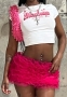 (Only Tops,Pink)2024 Styles Women Summer Fashion Slim Crop Top with Versatile Printed Short Sleeve TopSKU: #XF92888-2
