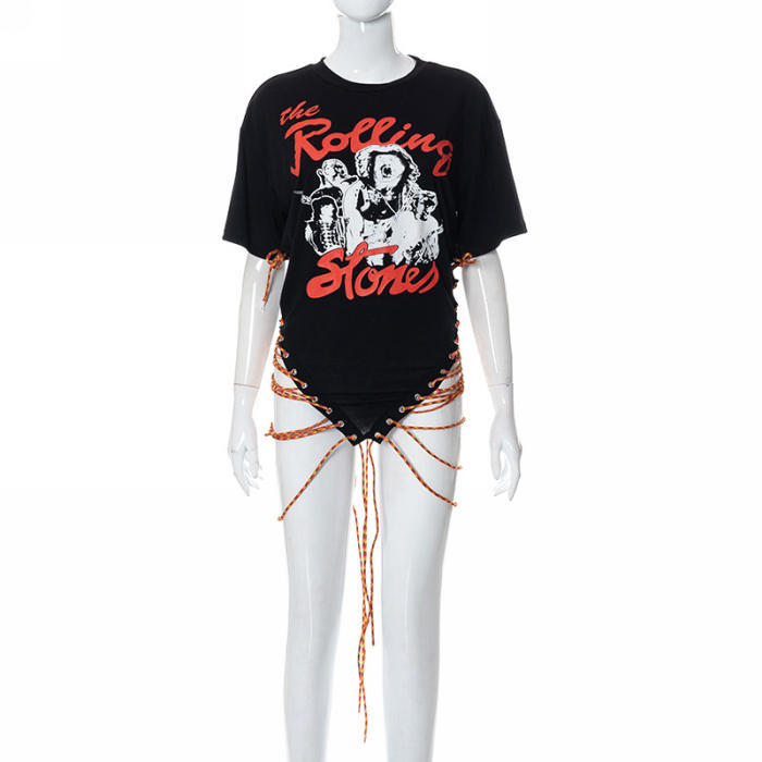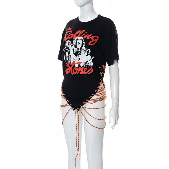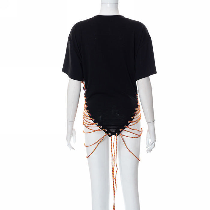 (Only Tops)(Real Image)2022 Styles Women Fashion INS Styles Double Lace Up TeeSKU: #CF68045-1
