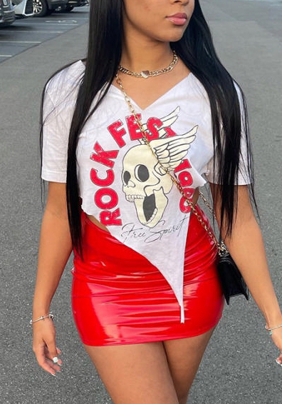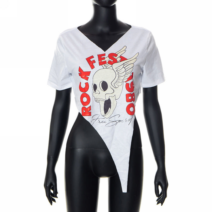 (Only Tops)(Real Image)2022 Styles Women Fashion INS Styles Irregular Print TeeSKU: #CF47069-1