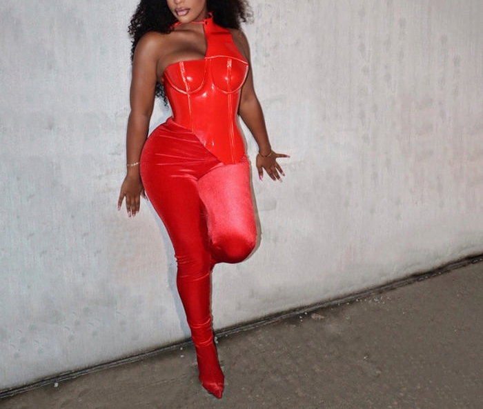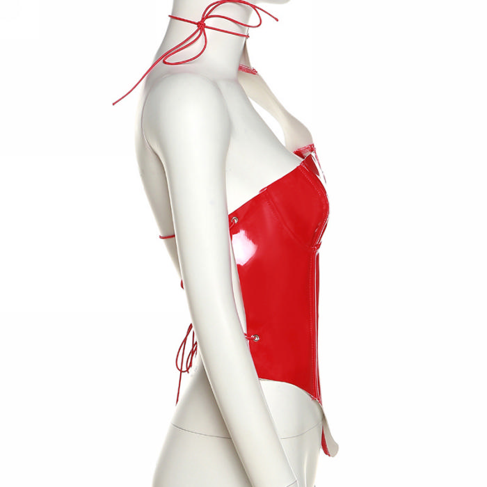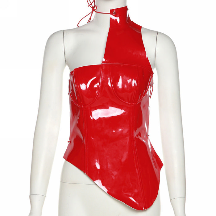(Only Tops)(Real Image)2022 Styles Women Fashion INS Styles PU Red CorsetSKU: #CF48712-1