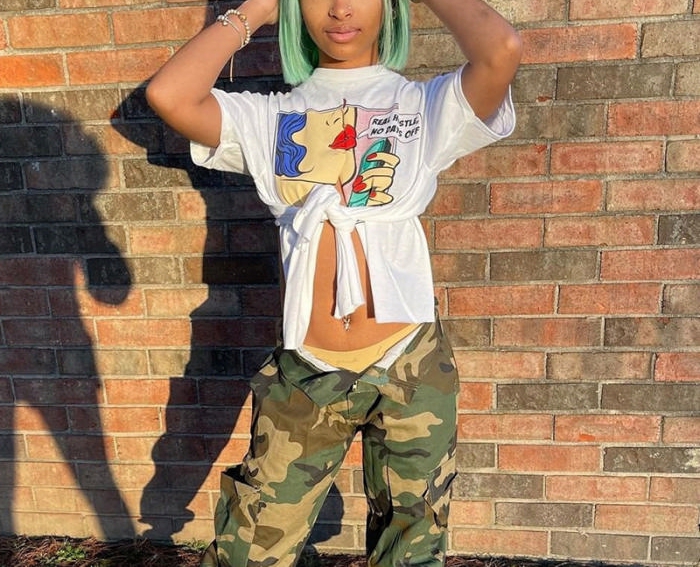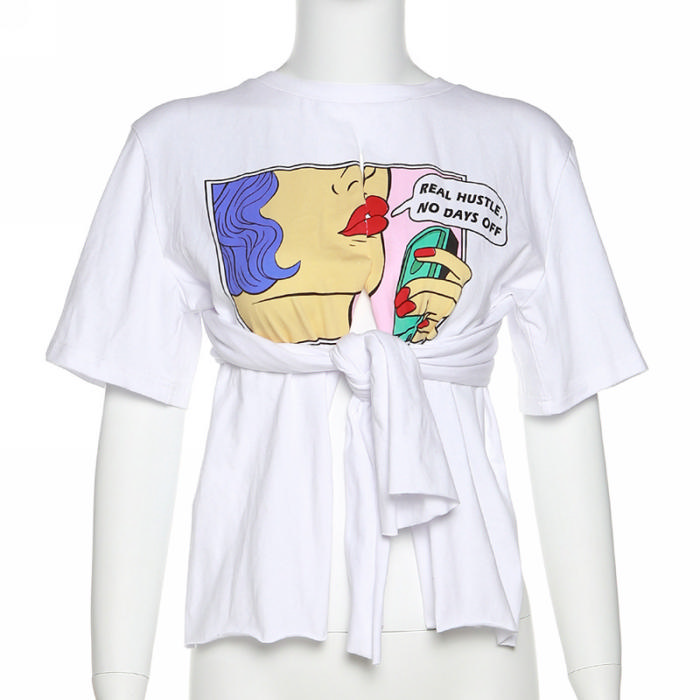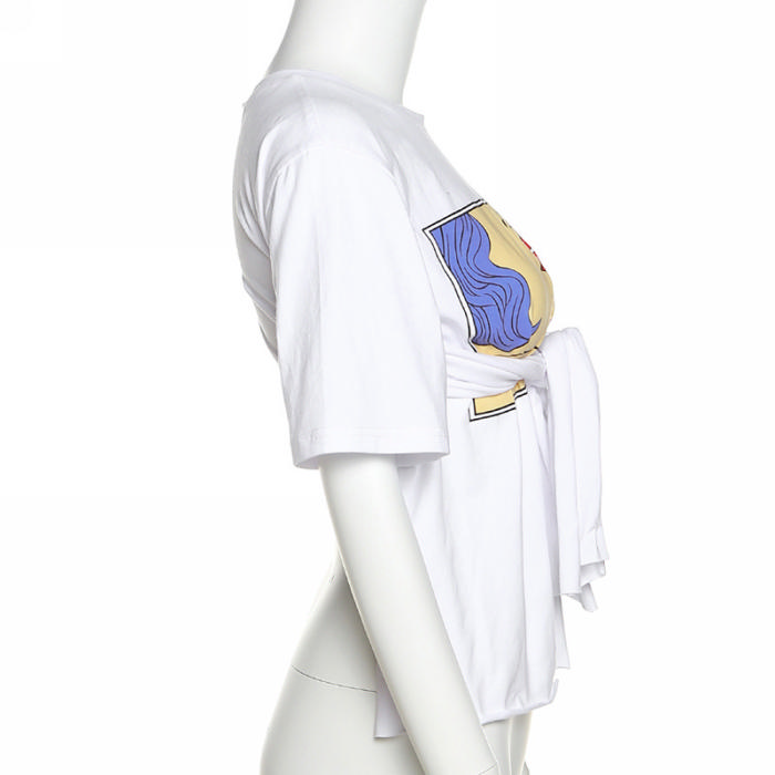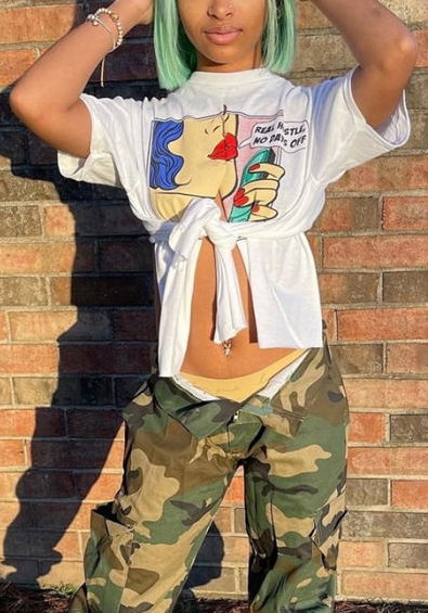 (Only Tops)(Real Image)2022 Styles Women Fashion INS Styles Print Ripped Tee TopsSKU: #OM0178-1