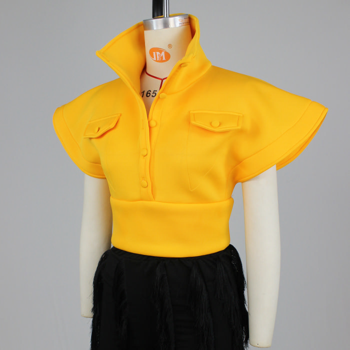 (Only Tops)(Real Image)2022 Styles Women Fashion INS Styles Solid Color Front Button BlousesSKU: #XF23028-1