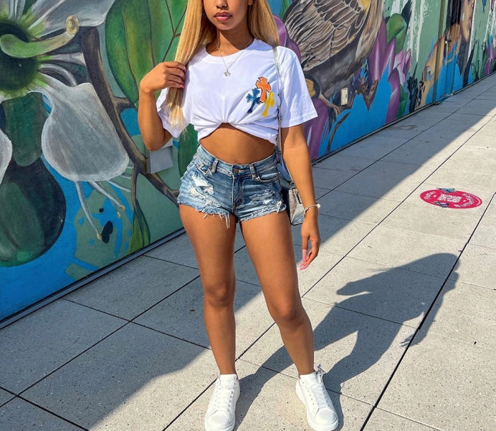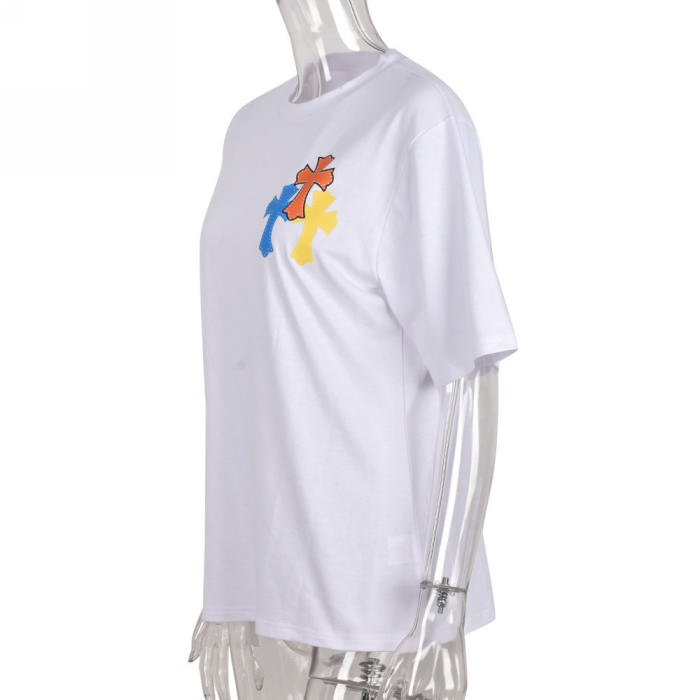 (Only Tops)(Real Image)2022 Styles Women Fashion INS Styles Summer Print Short Sleeve TeeSKU: #CF59092-1