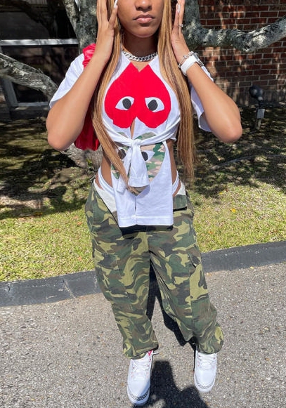 (Only Tops)(Real Image)2022 Styles Women Fashion INS Styles Summer Print TeeSKU: #CF59101-1