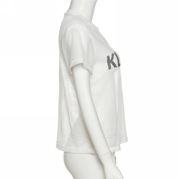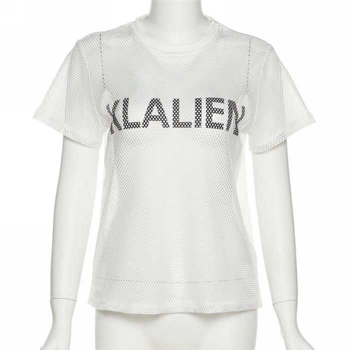 (Only Tops)(Real Image)2022 Styles Women Fashion INS Styles White Letter TeeSKU: #CF49759-1