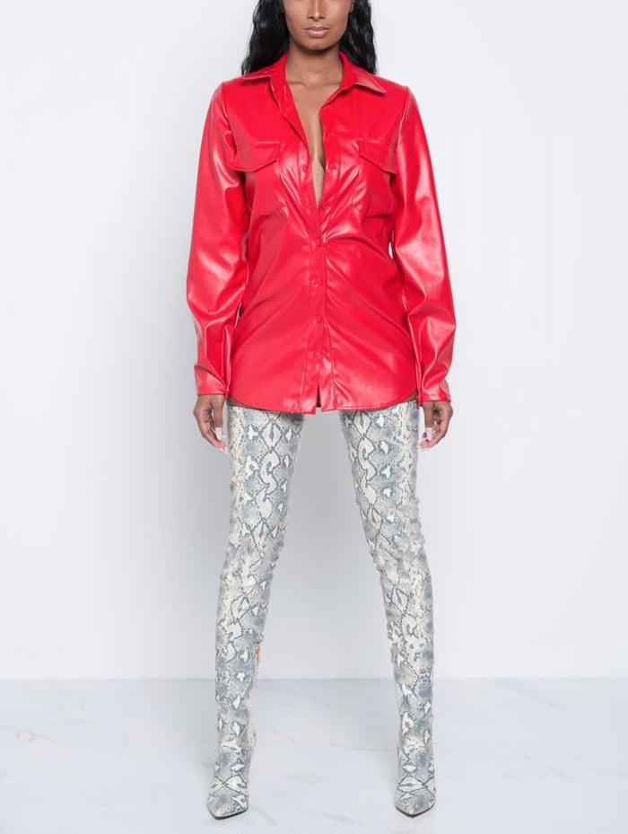 (Only Tops )(Real Image)2022 Styles Women Fashion Spring INS Styles PU ShirtsSKU: #XF23007-2