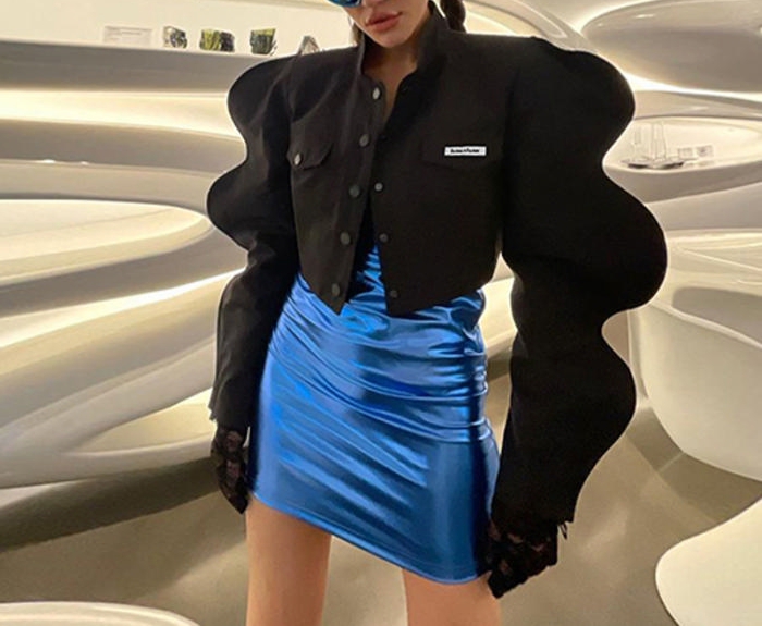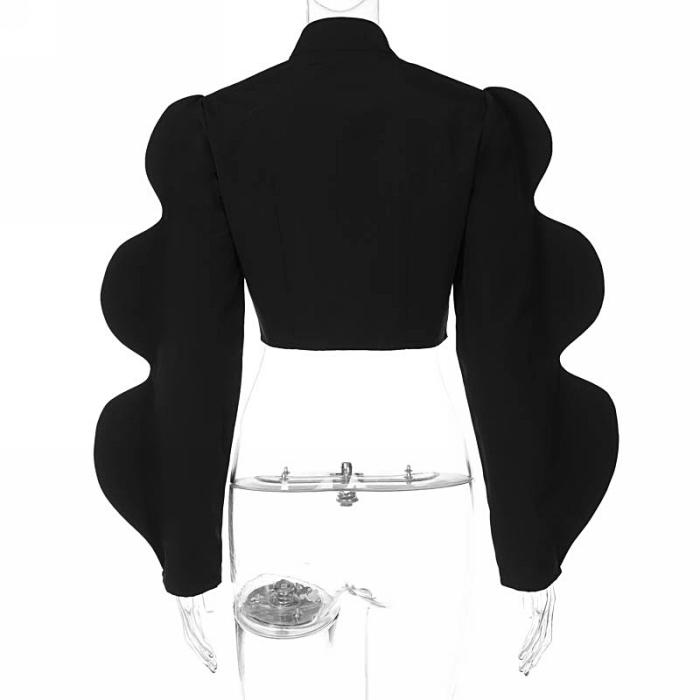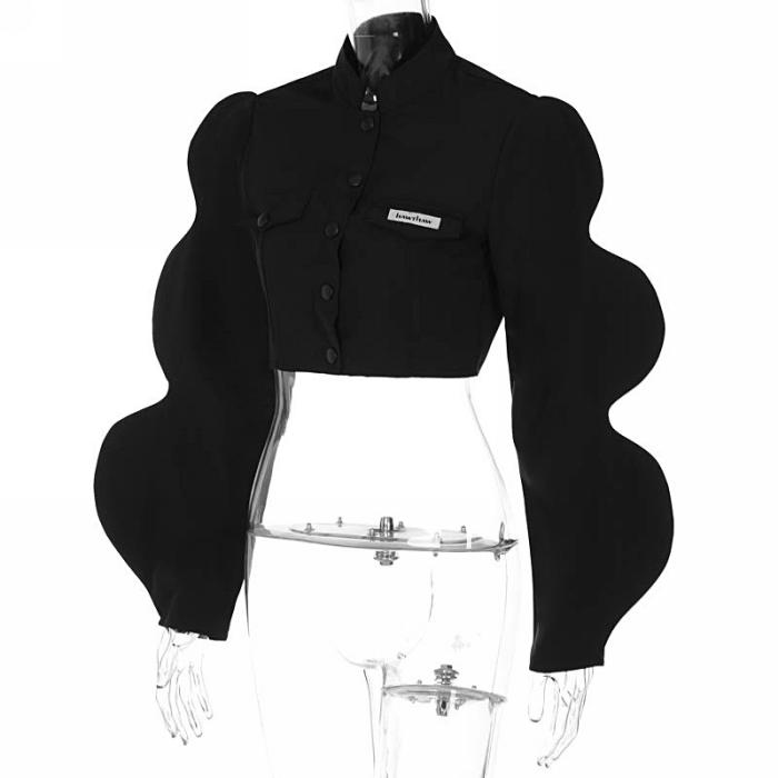 (Only Tops)(Real Image)2022 Styles Women Fashion Summer TikTok&Instagram Styles Black Front Button Puff Long Sleeve ShirtsSKU: #CF22792-1