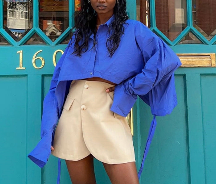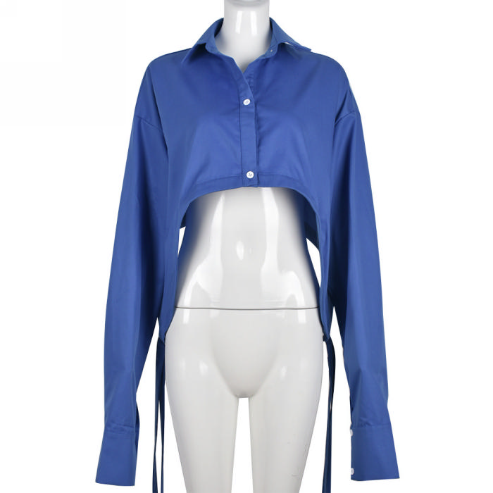 (Only Tops)(Real Image)2022 Styles Women Fashion Summer TikTok&Instagram Styles Blue Front Button ShirtsSKU: #CF59268-1
