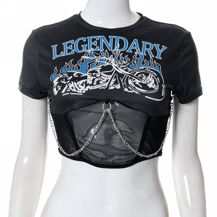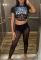 (Only Tops)(Real Image)2022 Styles Women Fashion Summer TikTok&Instagram Styles Print Black Short Sleeeve TeeSKU: #CF47123-1