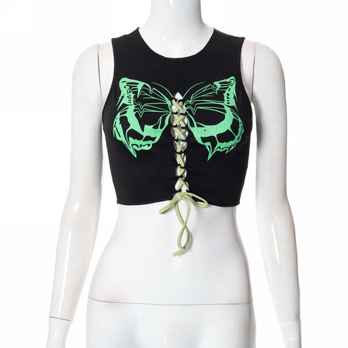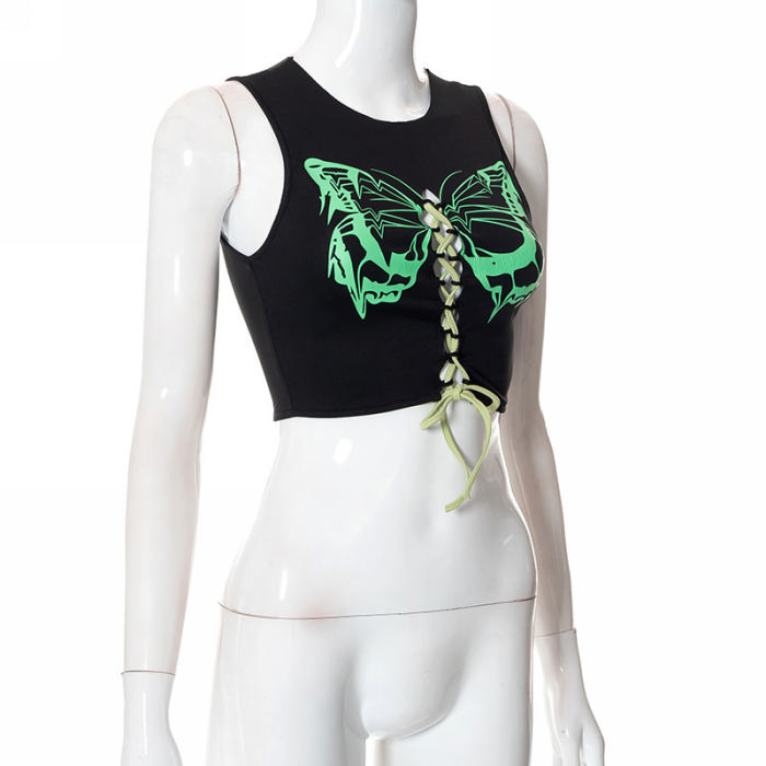 (Only Tops)(Real Image)2022 Styles Women Fashion Summer TikTok&Instagram Styles Print Butterfly TeeSKU: #CF76005-1