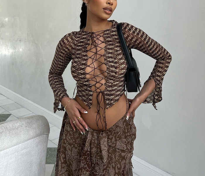 (Only Tops)(Real Image)2022 Styles Women Fashion Summer TikTok&Instagram Styles Print Lace Up ShirtsSKU: #CF47208-1