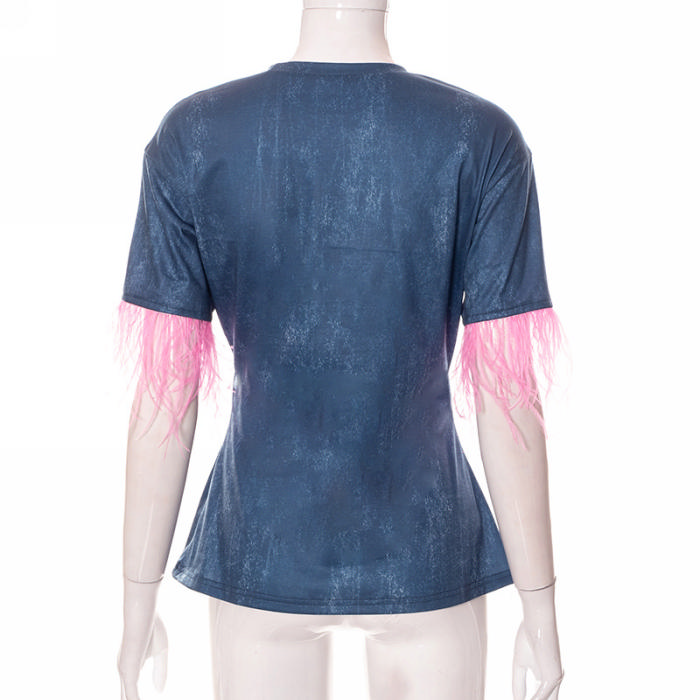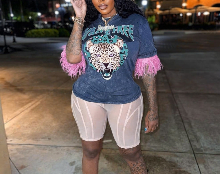 (Only Tops)(Real Image)2022 Styles Women Fashion Summer TikTok&Instagram Styles Tassel TeeSKU: #CF47133-1