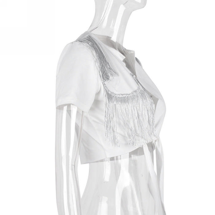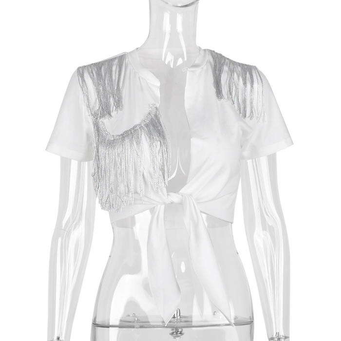 (Only Tops)(Real Image)2022 Styles Women Fashion Summer TikTok&Instagram Styles Tassel TopsSKU: #CF59241-1