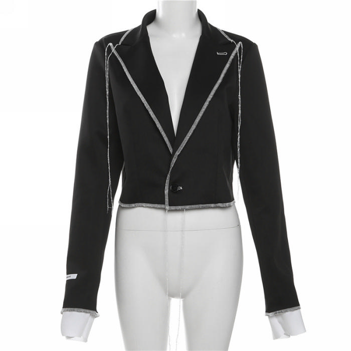 (Only Tops)(Real Image)2023 Styles Women Sexy&Fashion Autumn/Winter TikTok&Instagram Styles Black Open BlazerSKU: #CF77623-1