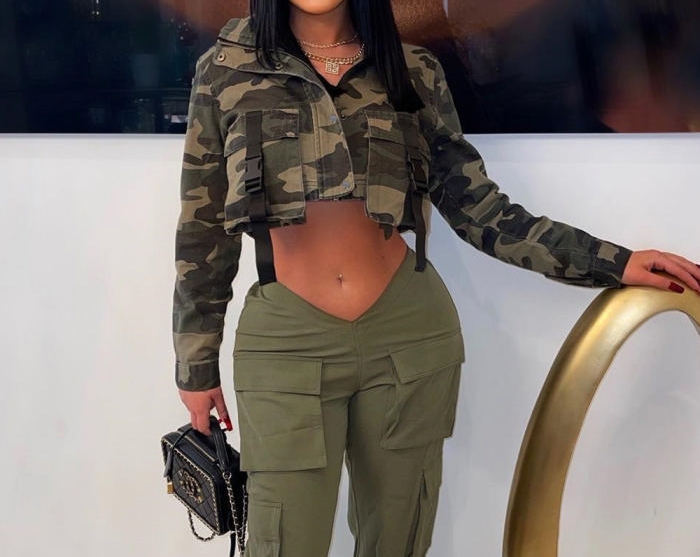 (Only Tops)(Real Image)2023 Styles Women Sexy&Fashion Autumn/Winter TikTok&Instagram Styles Camouflage Front Button CoatsSKU: #CF59756-1