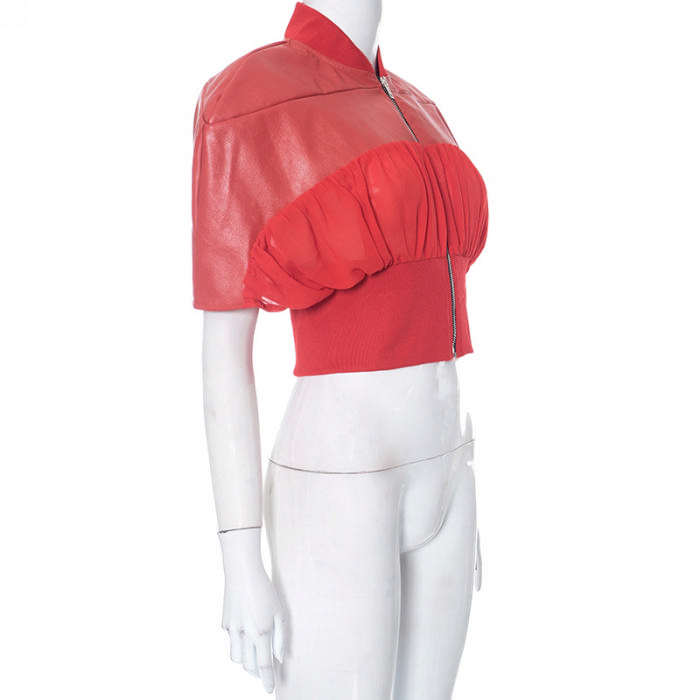 (Only Tops)(Real Image)2023 Styles Women Sexy&Fashion Autumn/Winter TikTok&Instagram Styles Front Zipper Red CoatSKU: #CF47745-1