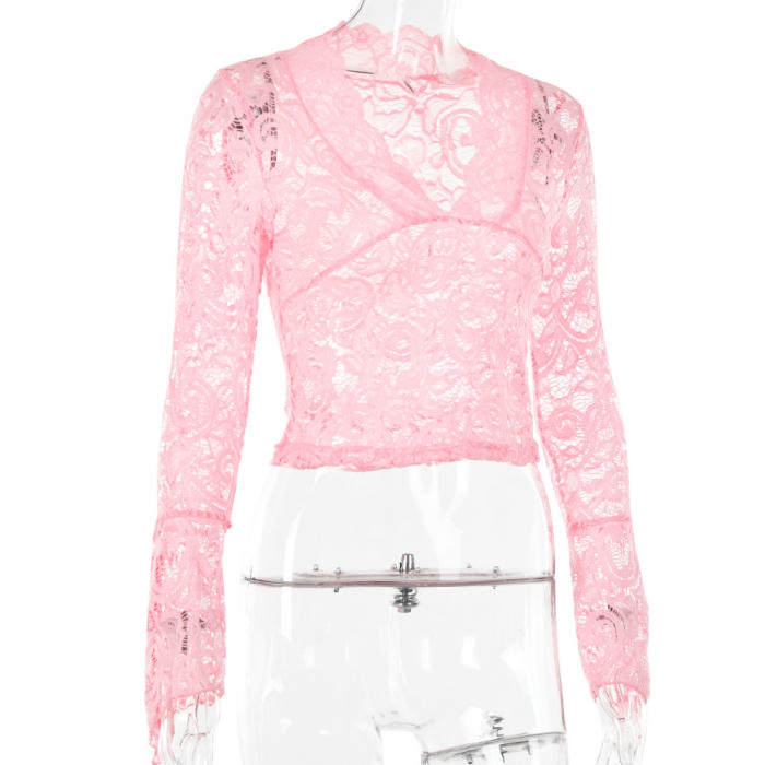 (Only Tops)(Real Image)2023 Styles Women Sexy&Fashion Autumn/Winter TikTok&Instagram Styles Lace V Neck TopsSKU: #XF62606-1