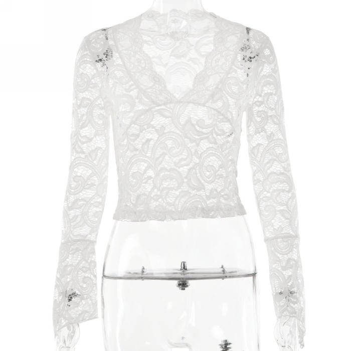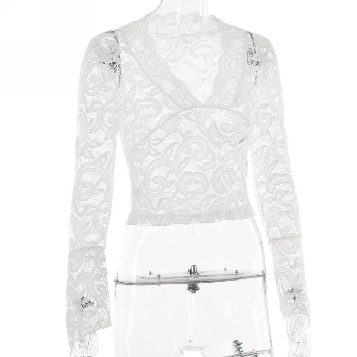 (Only Tops)(Real Image)2023 Styles Women Sexy&Fashion Autumn/Winter TikTok&Instagram Styles Lace V Neck TopsSKU: #XF62606-4