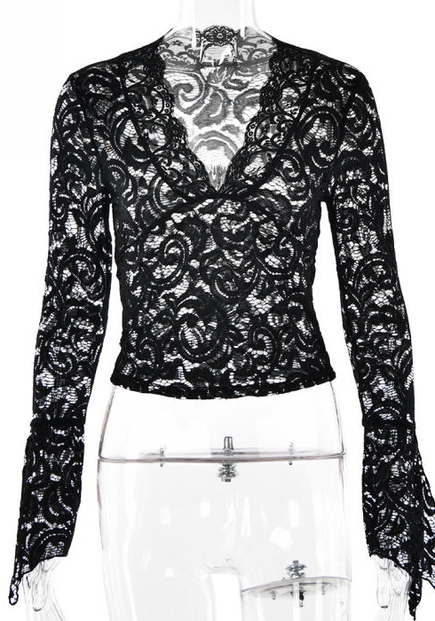 (Only Tops)(Real Image)2023 Styles Women Sexy&Fashion Autumn/Winter TikTok&Instagram Styles Lace V Neck TopsSKU: #XF62606-3