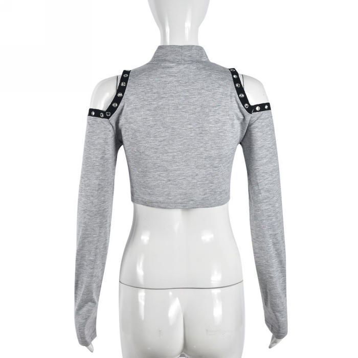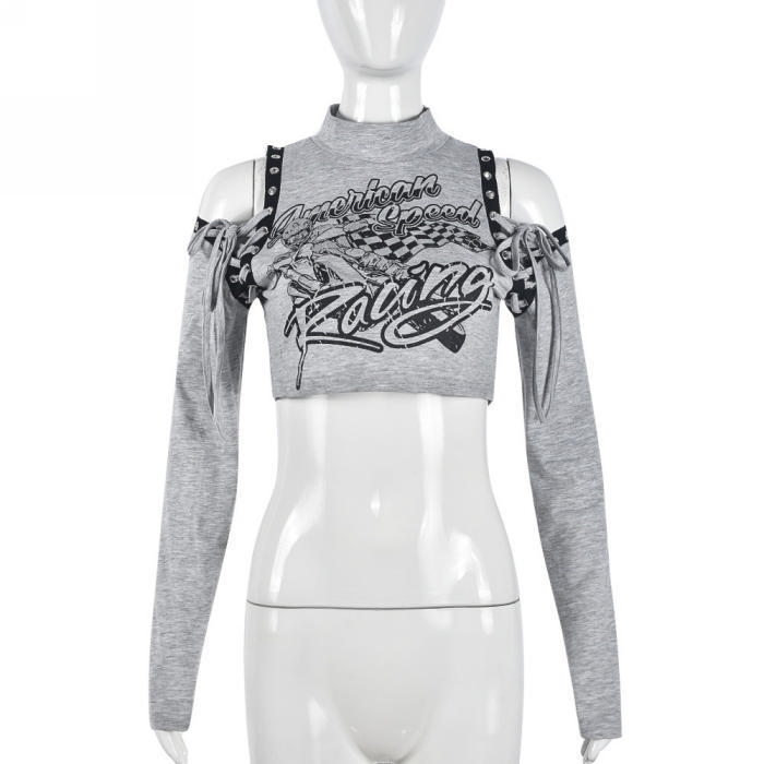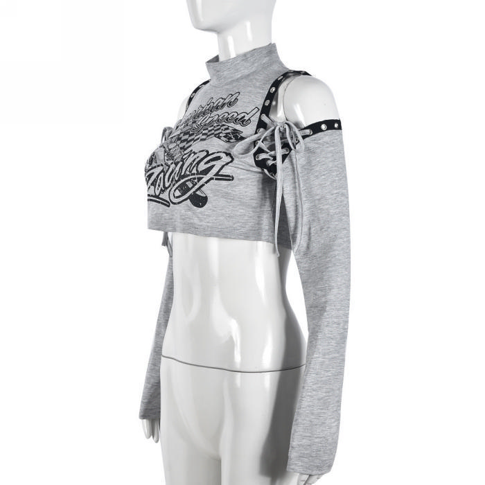 (Only Tops)(Real Image)2023 Styles Women Sexy&Fashion Autumn/Winter TikTok&Instagram Styles Print Gray Cold Shoulder Tank TopsSKU: #CF59800-1