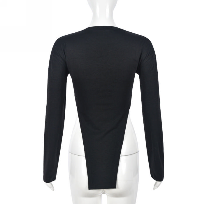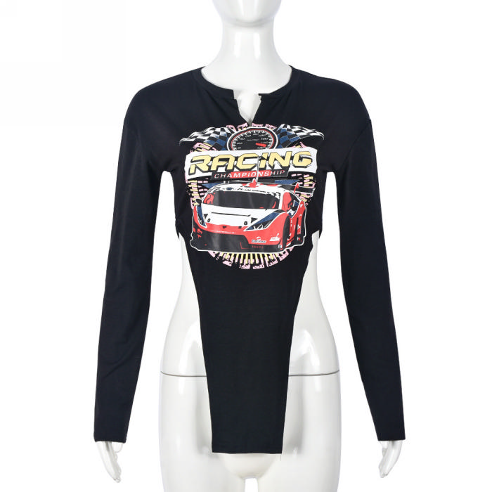 (Only Tops)(Real Image)2023 Styles Women Sexy&Fashion Autumn/Winter TikTok&Instagram Styles Print Long Sleeve Irregular TeeSKU: #CF59715-1
