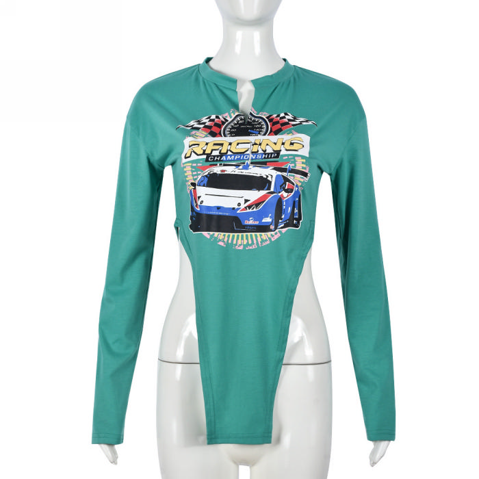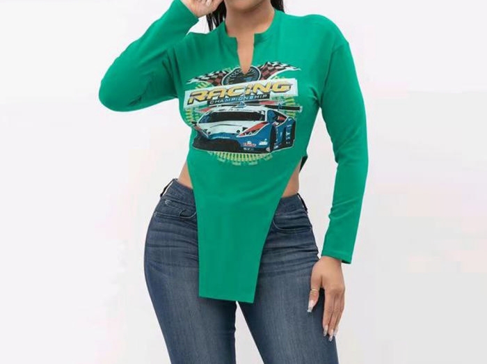 (Only Tops)(Real Image)2023 Styles Women Sexy&Fashion Autumn/Winter TikTok&Instagram Styles Print Long Sleeve Irregular TeeSKU: #CF59715-4
