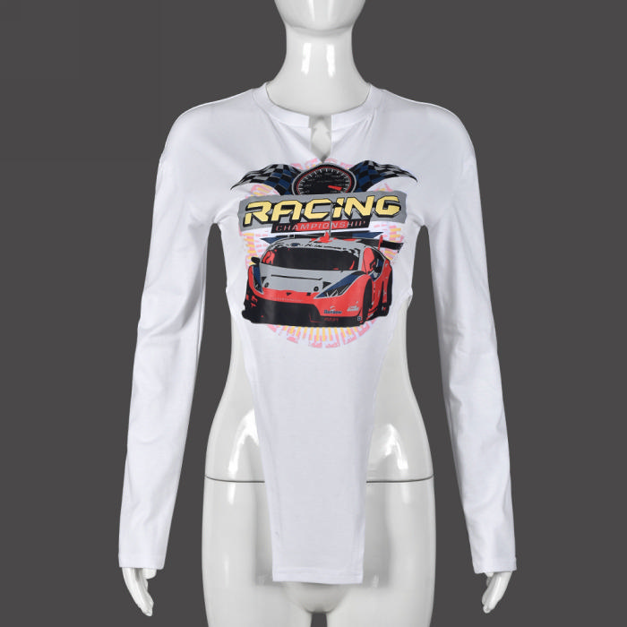 (Only Tops)(Real Image)2023 Styles Women Sexy&Fashion Autumn/Winter TikTok&Instagram Styles Print Long Sleeve Irregular TeeSKU: #CF59715-2